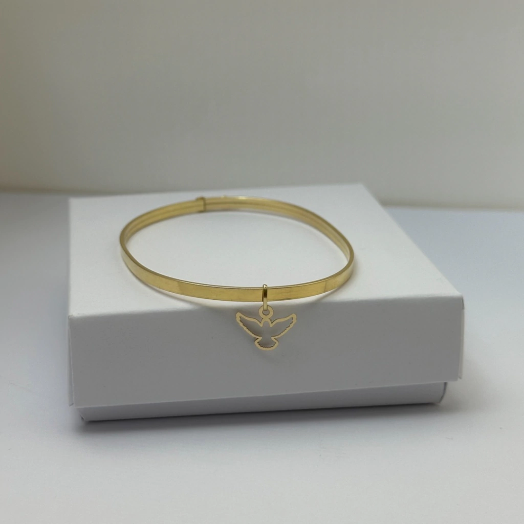Uma joia cheia de significado e elegância. Este bracelete de 3mm em Ouro 18k, com 19cm de comprimento, acompanha um delicado Pingente de Espírito Santo, trazendo proteção e fé para o seu dia a dia. É a escolha perfeita para compor looks com leveza e sofisticação.